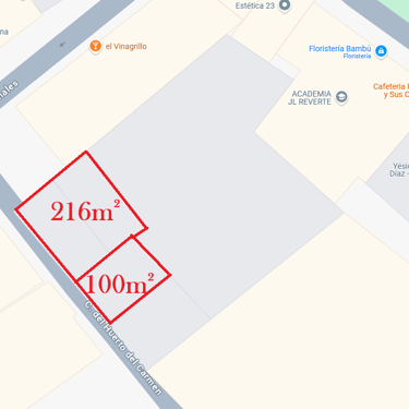 La parcela anexa de la izquierda que linda con la calle Canales, que actualmente se utiliza como terraza del restaurante, fue cedida por el ayuntamiento. Aunque esta superficie no está incluida en la venta, se contempla la posibilidad de abrir una negociación con el ayuntamiento de Cartagena para adquirirla. Esta extensión de terreno permitiría una mayor flexibilidad en el diseño del proyecto y, potencialmente, en el aumento de la altura del edificio.